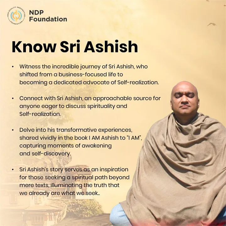 Through years of dedicated meditation, and study of ancient spiritual texts and Eastern philosophies, Ashish underwent a profound inner transformation. He came to understand that the self, as conventionally perceived, is a construct of the mind, and that true Self-Realization goes beyond the limitations of ego and identity.